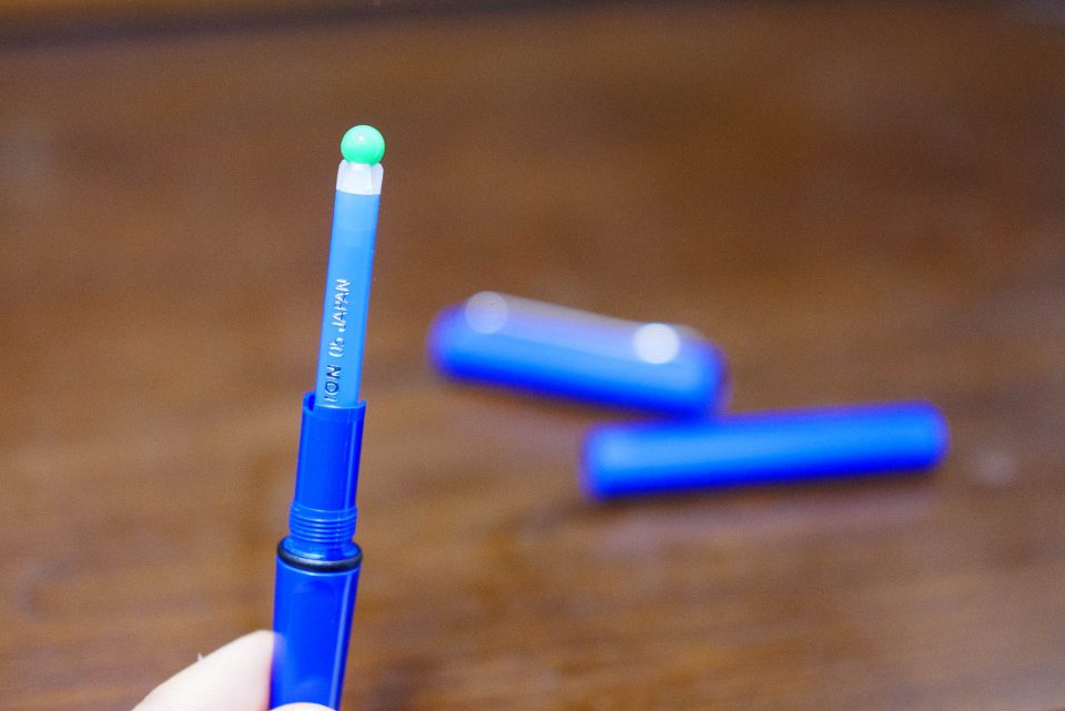 今回はフリクションの青と赤を使うため、ブルーとレッドの軸を使用しました。